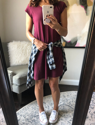 I like to get a little creative with my clothes and combine a denim dress with a sheer top and of course my red converse high tops!